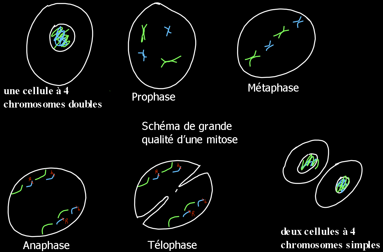 Pour fabriquer des cellules sexuelles (spermatozoïdes ou ovule) la mitose ne fonctionne pas car sinon, il y aurait trop de chromosomes. Il faut donc un autre phénomène : la méiose.